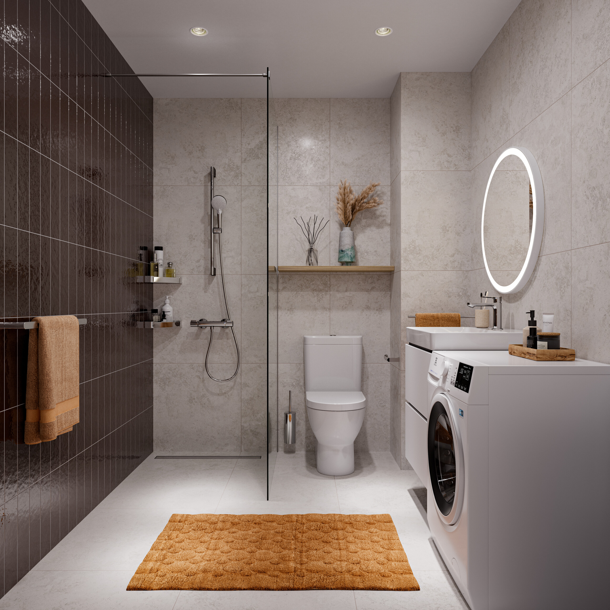 Siseviimistluspakett Raba loob kodu, kus looduslähedased toonid annavad ruumile soojust. Vaikne luksus kujuneb ajatu värvigamma ning läbimõeldud materjalivalikute koosmõjul. Iseloomu loob vannitoale punakaspruunikates toonides aksentsein, sidudes kogu kodu ühtseks tervikuks.